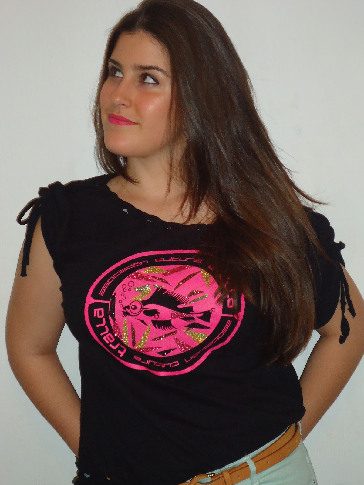 El diseño gráfico no es mio,cada año los organizadores crean uno y yo me limito a decorar y cambiar el modelo de la camiseta.Trabajo con camisetas de hombre y las transformo en camisetas para chica,aunque también hago modelos para chico.Reconozco que este año el logo no me gustaba mucho,pero aun así le puse cariño en todas las que hice(unas 12 en total)